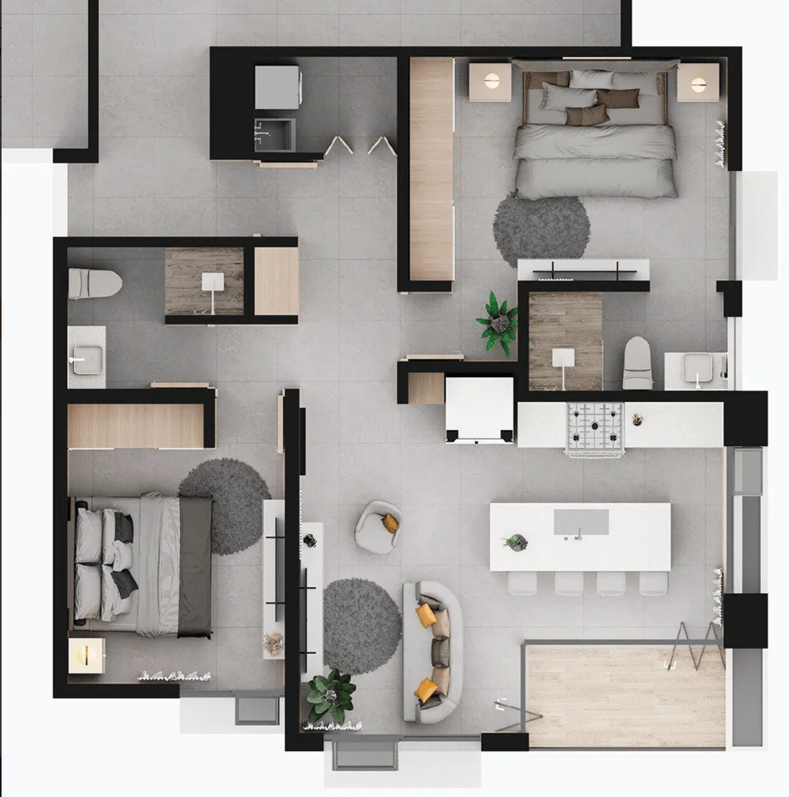 • 🛏️ Apartamentos modernos con excelente distribución y acabados premium.